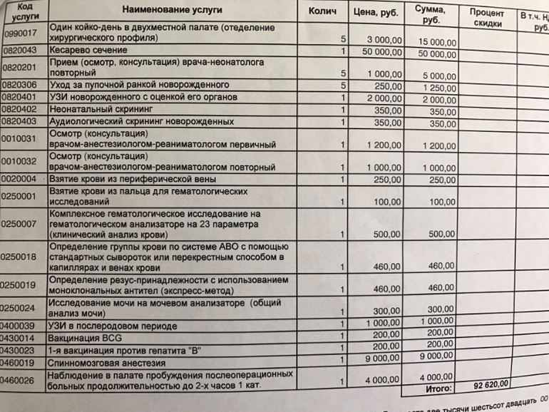 Обзвонили все страховые, с которыми они сотрудничают. (Контракт через страховую) У всех ДМС стоит от 100 до 200 тыс, за исключением уралсиба - 76тыс. Но я не уверена, что консультант меня правильно понял, и это именно цена за кесарево. А практика в уралсибе такая - оставляешь заявку на покупку ДМС на роды на их сайте и ждешь, когда они сами с тобой свяжутся. Я прождала 5 дней - глухо. Решила ехать в офис, но предварительно позвонив, в какой именно. Оказалось, в офисе они так все равно контракт не заключают, «ваша заявка рассматривается от 5 до 30 дней, мы сами с вами свяжемся.» У меня нет 30 дней на ожидание, поэтому позвонили в отделение платных услуг самого роддома. Оказалось, что обычное кесарево с дежурной бригадой стоит в 25 рд 92 тыс, а не 115, как написано на сайте. Что входит в эти 92 тыс, я напишу, или приложу скан чека и договора.