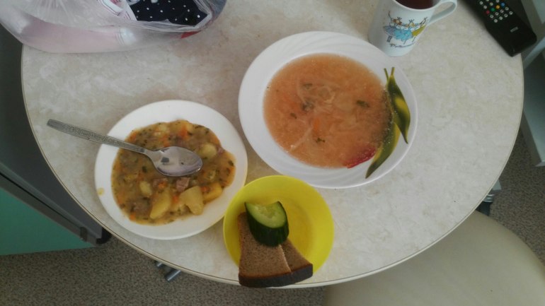 Кормят просто, по-больничному, диетическое. Когда приходит молоко,(у меня это ночь с 2 на 3 сутки), лично я ем все что не прибито к полу и не яд. Поэтому выпендреж в сторону и вперед. Где-то добавила своего сахара, где-то сыра. На капусту дочь кажется среагировала, так что ее не ела, да и не так часто давали. На 50% перебивалась своей едой, особенно в ночи (сыр, хлеб, йогурты, чай, молоко, баранки мягкие, конфетки, творог детский). Кстати, с передачами сложно, очень строго, по разрешению врача. Если что - надо звонить врачу по контракту.