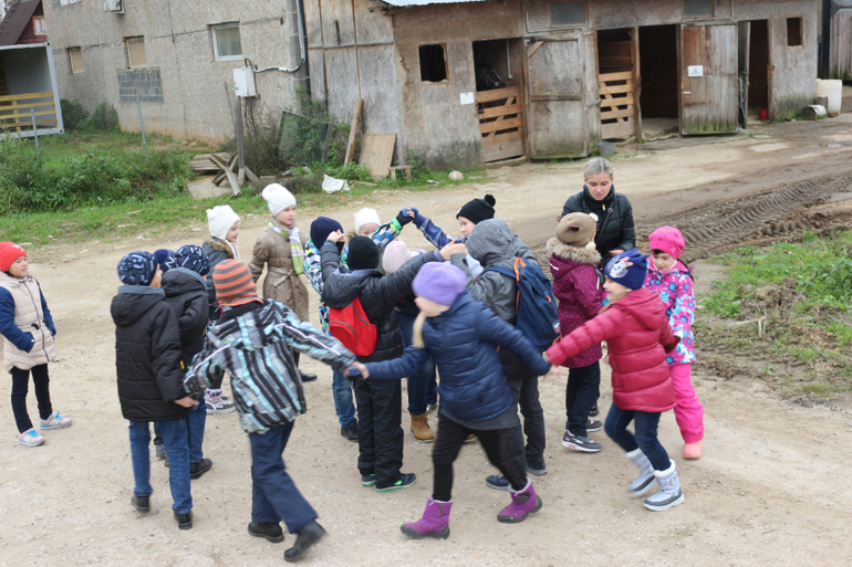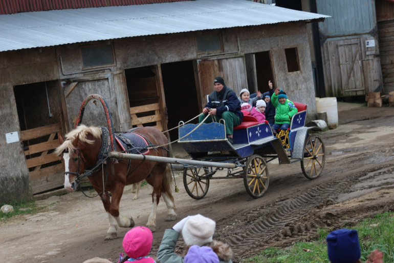 После того, как дети покормили, настискали лошадок и закрепили теоретическую часть на практике, мы отправились на ферму, по дороге еще раз покормив лошадок.
