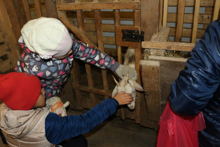 Завели нас в двухэтажную бытовку, усадили детей, и девушка Катя начала детям рассказывать про животных, живущих на ферме. Нудятина, да? Не тут-то было! Дети слушали с большим вниманием, и не только дети))