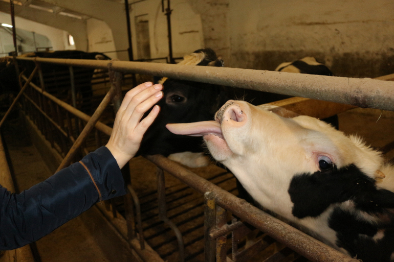 Да, подпахивает в коровнике, но не навозом. Довольно чисто там. Насчет запаха нас предупреждали - пахнет силос.
