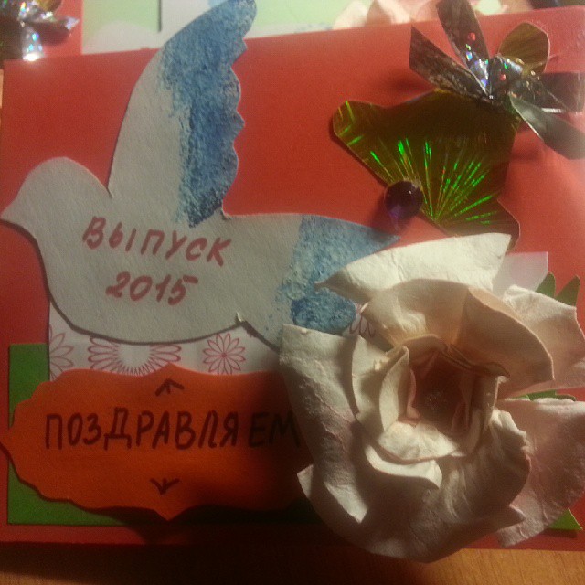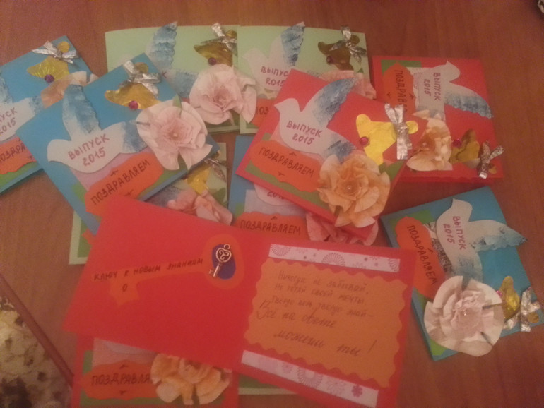 Пусть дети сделают поделки, например, все делают по медали для старшеклассника, раскрасят-украсят их. Или по открытке своими руками. Ну, кто захочет еще по цветочку принесет.