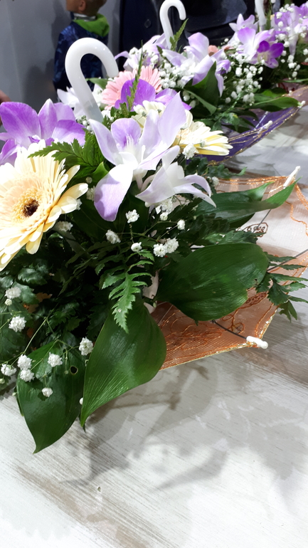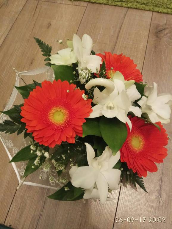Это живые цветы в зонтиках. Стоимость одной композиции 500 руб