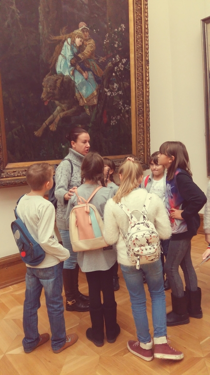 Мы тоже в эти выходные ходили в третьяковку на квест от http://kvestvmuzee.ru/. Ощущение неоднозначное. Ходили с группой детей 6 лет. Название квеста " как из картин рождаются сказки ". И сначала нам показали портреты царей, явление Христа народу, неравный брак.... И только в самом конце, когда дети уже устали, мы галопом пробежала Васницова. Квест был в конце. БОльшую часть времени дети читали вопросы сами ( а кто не смог - расстроился). В конце дали призы: шоколадная медаль и расскраска.