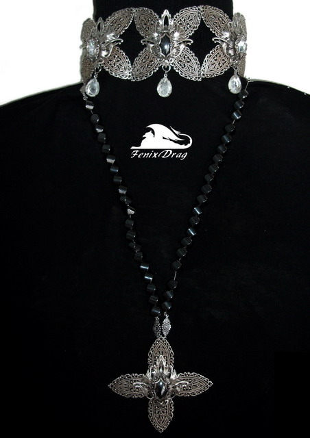 Комплект колье - женский чокер (украшение по типу ошейника), бусы, кулон и серьги "Герцогиня / Duchess"