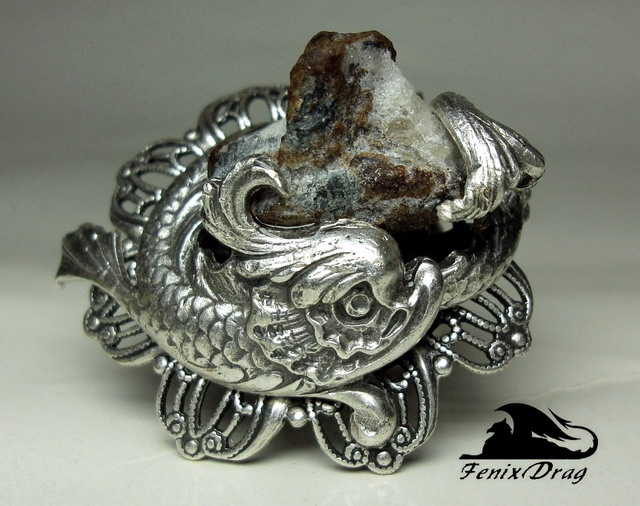 Кольцо / перстень "Камень крест" со ставролитом обвитым рыбкой на цветке