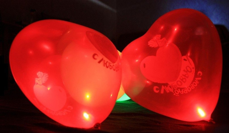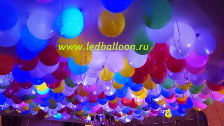 Воздушные шарики со встроенными диодами могут гореть одним цветом или переливаться несколькими цветами.