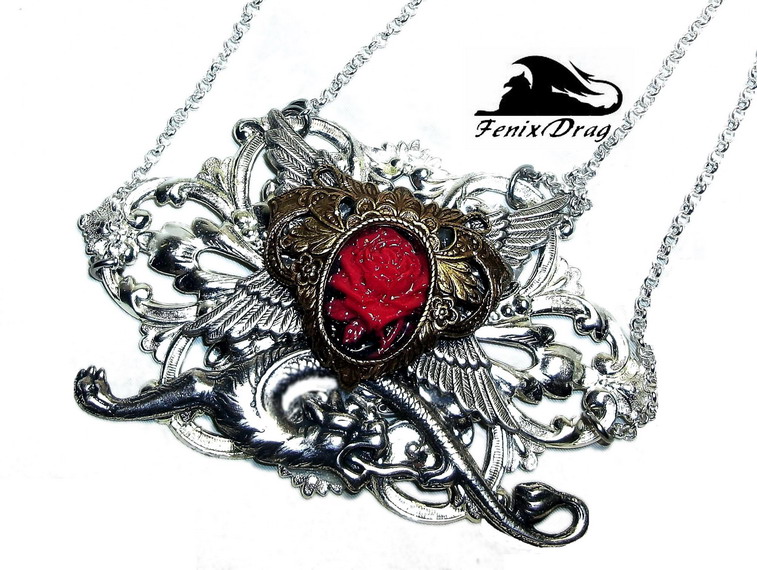 Готический кулон "Оборотень" красная роза и мифический волкСтимпанк, Винтаж, Викторианский стиль