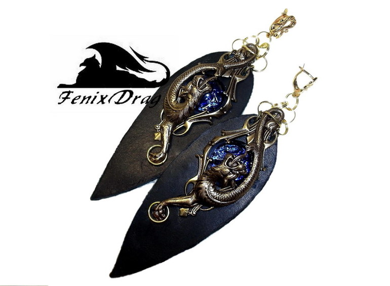 Кожаные длинные серьги "Красный волк. Мистерия" в стиле Нео-винтаж, Фентези, Стимпанк / Steampunk
