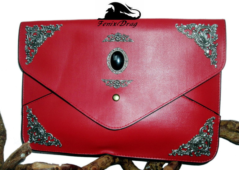 Романтичная Стимпанк сумка из красной кожи с гематитом ручной работы