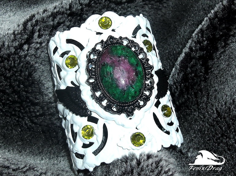 Широкий белый ажурный браслет "Барельефы Барокко" в Винтаж, Стимпанк стилях
