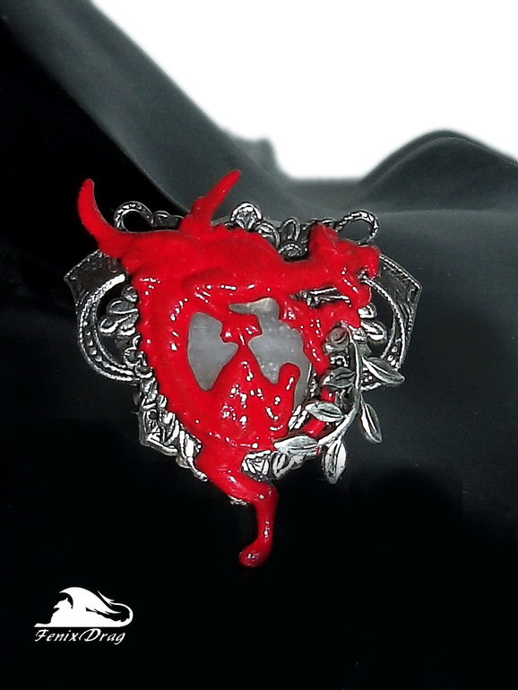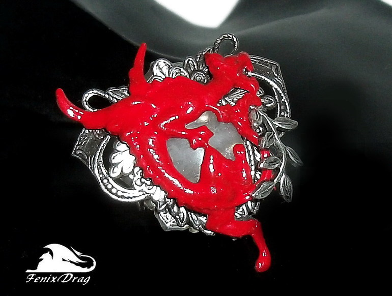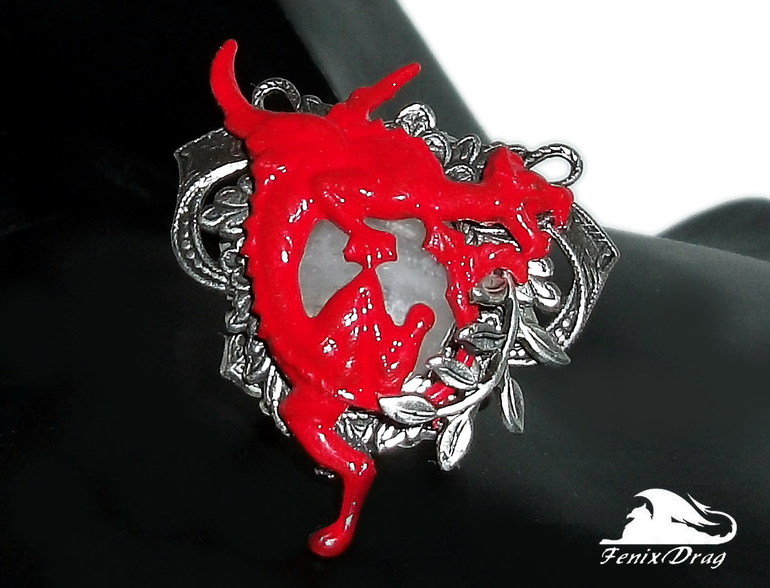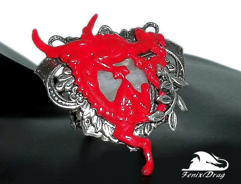 Кольцо "Красный дракон" покрытие серебром, розовый кварц Стимпанк, Винтаж, Викторианский, Готика сти