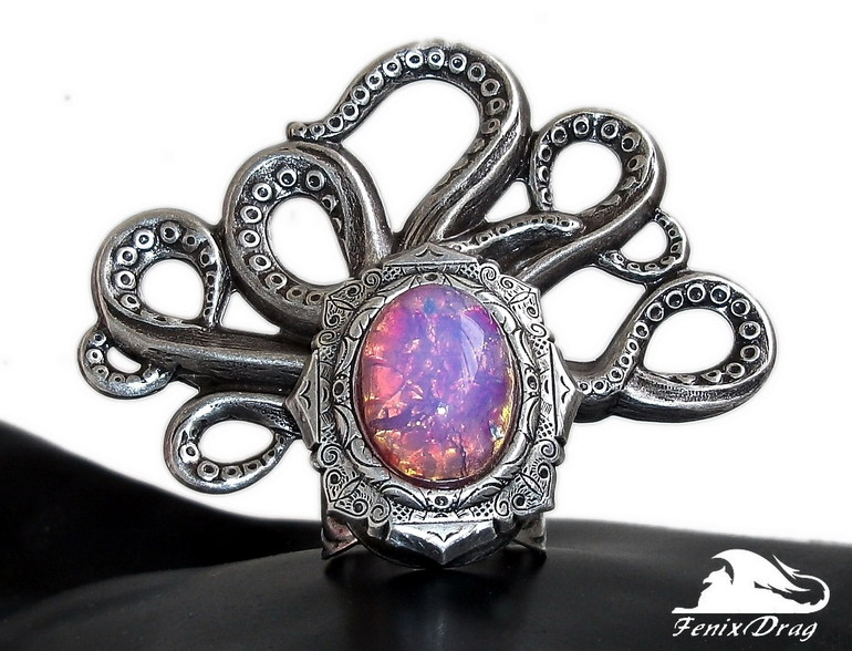 винтажная латунь в покрытии серебром; искусственный стеклянный опал ручной работы
