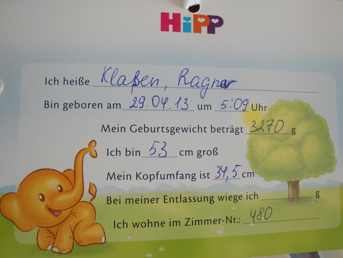25.10, в 14:44 родился Георг: вес 3820, рост 54, 10/10