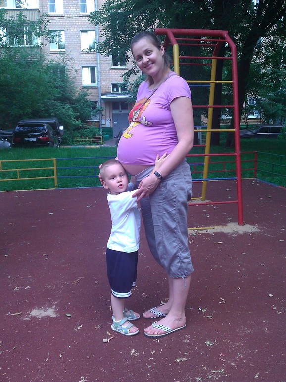 Беременность была долгожданной - год и 3 мес.не было, хотели даже уже идти проверять всё. А потом раз и получилось (после моря). Б. была по самочувствию моему нормальная, но врачам не всё нравилось - в начале усмотрели угрозу, капали капельницы с магнезией и в конце тоже считали, что малышка маленькая и "докармливали" капельницами уже с актовегином. Но не лежала в больницах, а только приходила на дневной стационар.