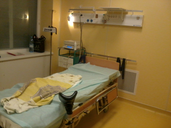 собралась за 2 минуты и полетела рожать))))))) там меня встретили знакомые лица(которые симулянткой назвали)поприкалывались,пока оформляли.положили в отдельный род.блок.сказали ждать врача.пока ждала врача,сделала пару фото,все рассмотрела-палата на одного,туалет и душ.кресло для мужа(при партнерских родах.кстати,там все бесплатно,роды с мужем приветствуются,нужна только ФЛГ и чистая одежда.)мы тоже хотели рожать вдвоем,но на часах было 1-30 и я не стала вызывать к себе мужа из другого города.пока не пришел врач,поставили катетер в единственную нормальную вену и начали вливать какой то раствор-сказала что но-шпа,но меня смутило ее количество-20кубиков.вливает под таким напором,аж вену больно,я ей сказала об этом и тут такой взрыв-лопнула вена,был такой офигенный фонтан брызг типа но-шпы и крови,всю меня улила,зараза,я в шоке...пришел врач,посмотрел-раскрытие 3пальца,говорит к утру не родишь,поспи,набирайся сил.ну я естественно спать не хочу,мне б родить уже поскорей,хожу по палате.зашла медсетсра,говорит гинипрал в капельнице принесет сейчас если спать не лягу,я отказалась.я ведь рожать пришла,а не сохраняться.легла ,задремала.просыпаюсь от дикой боли в животе и от того,что меня сейчас стошнит.пытаюсь встать,и понимаю.что не могу от этой боли пошевелиться.все же встаю и падаю в обморок.поза -голова и туловище на кровати,,ноги на полу-головой уткнувшись в подушку..не знаю сколько я провалялась,очнулась от того,что меня трясет со страшной силой.еле еле доползла до двери,чтоб кого-то позвать(хотя там на стене есть тревожные кнопки для вызова врача.но я не вспомнила про нее,не до нее было)открываю дверь,напротив сидит медсестра,я говорю МНЕ ПЛОХО и снова падаю в обморок.очнулась на кровати от того,что меня трясет и подкидывает от кровати сантиметров на 10 точно(не преувеличиваю,трясло дико).медсестры пытаются ставить катетер(а вен то нет....последнюю и то взорвали)врач смотрит ктг,делает осмотр.спрашивает СХВАТКИ НАВЕРНОЕ УСИЛИЛИСЬ,А ТЫ ТЕРПЕТЬ НЕ МОЖЕШЬ?ДА?! я говорю какие схватки.правый бок как буд-то наживую ножом режут,даже рукой не возможно дотронуться.он говорит,СЕЙЧАС ПРОКОЛЕМ ПУЗЫРЬ МАХОМ РОДИШЬ ,ДАЖЕ САМА НЕ ПОЙМЕШЬ.прокололи,воды светлые,а я все корчусь от боли.сказал принести аппарат узи.пока ждал помотрел мою карту подробно и говорит ДАК У ТЕБЯ ЧТО СТОЛЬКО Беременностей ,БЫЛО И НЕ ОДНОГО ЖИВОГО РЕБЕНКА НЕТ? я говорю,нет...а он ВСЕ ПОВТОРЯЕТ НИ ОДНОГО РЕБЕНКА,НИ ОДНОГО РЕБЕНКА...принесли аппарат узи.шепчутся с анестезиологом,я поняла,что что-то не так..............итак истерю от боли,а тут вообще меня накрыло до всхлипываний.ОН-БЫСТРО ЕЁ НА КЕСАРЕВО!!!помню только постоянно умоляла,ЧТОБ ТОЛЬКО СПАСЛИ РЕБЕНКА .на что врач даже прикрикнул на меня,чтоб успокоилась.-ВИДИШЬ КТГ НОРМАЛЬНОЕ!? СЛЫШИШЬ СЕРДЦЕ БЬЕТСЯ? ПЕРЕСТАНЬ ИСТЕРИТЬ!!!дали подписать какие-то бумаги и повезли в операционную.