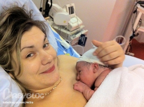 Конечно в моих легких родах есть и форс-мажорное обстоятельство, мне разорваться не дали, сделали наружный разрезик, потом его аккуратненько зашили, после полуночи от выпитого огромного количества воды - открылась рвота и до 4 утра, потеря крови около одного литра, упадок гемоглобина и железа. Сначала Лею приложили мне на грудь, а потом приложили на грудь моему мужу, а меня в этот момент приводили в чувство. После нас отвезли в нашу палату, я просто глаз не могла сомкнуть всё любовалась моим сокровищем.