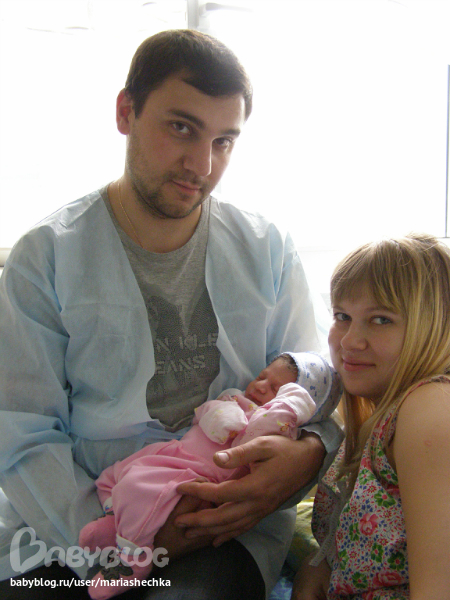 Беременность протекала довольно легко, не считая отёков из-за ужасной жары в последние 2 недели.. ПДР моя была 1-3 июня.. 2 числа сдала последний экзамен и мы стали упрашивать дочу скорее собираться к нам) Но она не торопилась..5 числа мы поехали в роддом, посмотрел нас врач, сказал, что не отпустил бы уже домой,но мест нет и если не рожу, то 10 приезжать с вещами сдаваться..На следующий день мы с мамой решили поехать на дачу к родственникам..Там я оторвалась по полной - наелась клубники, малины, черешен..мм)) Потом часа в 3 я стала замечать, что прихватывает легонько меня, но особого внимания не обратила (т.к. последнюю неделю такое бывало часто)..Приехали домой в 6, прихватывало довольно регулярно, раз в 7 минут. Стали на всякий случай проверять пакеты, дособирать всё, купаться и т.д.. Было решено в 22:00 выезжать в роддом) Позвонила мужу, сообщила,что собираемся..Он распереживался, т.к. начал нереально тупить))))Приходилось всё по 3 раза повторять)))