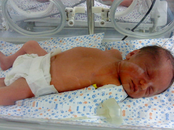 И вот в воскресенье 24 апреля вышла слизь, я узнала, что это пробка. Она выходила частями до вторника. Периодически схватывал живот, ныл. Я все боялась пропустить настоящие схватки. Но схваткосчиталка писала, что это матка тренируется. Приближались майские праздники, 3 выходных дня. Муж с ребенком уезжали на дачу, а я должна была одна остаться дома. Решила перестраховаться, съездить к врачу, чтобы она посмотрела шейку. Просидев, как обычно, 3 часа, врач мне сказала, что шейка сглажена, ребенок внизу и родить могу уже сегодня. А у меня только заканчивалась 35 неделя! Решили везти в 15 роддом. Приняли меня там очень хорошо, вежливо. Никто не орет, все рассказали, показали... Принимала меня Анжелика. Акушерка Олеся, посмотрев на кресле, сказала, что уже 2 см раскрытие. Сделали клизьму и отправили на КТГ в предродовую. В 17 часов прокололи пузырь, т.к. он бы сам не лопнул, ребенок прижал что-то. Схватки участились. Терпеть было не выносимо, хотя с Андреем такого не было. Посмотрела Олеся, сказала, что шейка из-за рубца раскрывается спазмами, надо делать эпидуралку. Как я ее не хотела! Но терпеть не было сил! В общем, через полчаса после укола начались потуги. Мне сказали идти в родзал, а я не могу! Говорю трясет всю! Привезли каталку, помогли перелечь. С третьего захода потуг я родила моего сына. 47 см и 3020 г. Но его посчитали недоношенным и отправили в интенсивную терапию.