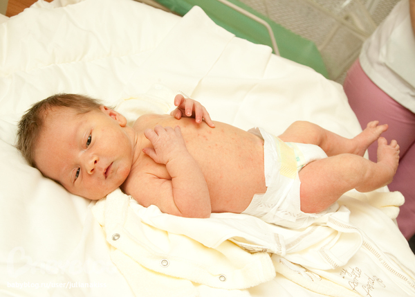 В роддом меня отвез папа, когда ехали, я уже начала чувствовать небольшую боль каждые 5-6 минут. В 10.00 приехали в 8-ой роддом. Там меня еще раз посмотрели, открытие 4-5 см. Сделали клизму( После нее и поняслась веселуха) В родовую поднялись в 11.00. Положили на кровать, нацепили два датчика (схватки и сердцебиение малыша). Рядом сидела медсестра и задавая вопросы, заполняя анкету, отвлекала меня от происходящего. Схватки становились все чаще и больнее... В 11.40 при 7-8 см открытия и на схватке, мне прокололи пузырь... Вот после этого я на самом деле почувствовала все "прелести" схваток))) В 12.00 - полное открытие, начались потуги... Меня поревели на крела, объяснили как правилино тужиться... На третьей потуги, в 12.20 я родила своего богатырька)))))) Мальчик весом 3840гр, ростом 54см, 8/9 по Апгар)))))))))))))))))))))))