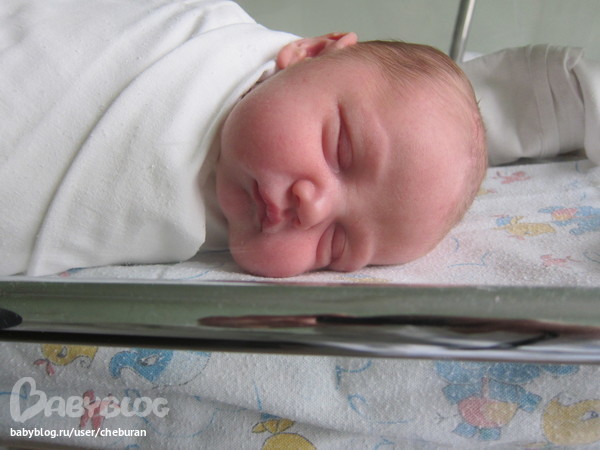 Тут же повели в операционную, раздели, уложили, вставили катетер (жесть еще та), пристегнули ноги и руки ремнями вроде, в правую руку капельницу, на левой танометр (для измерения давления), в спину эпидруалку (тоже жесть), живот и ноги намазали коричневой фигней (йод наверное), положили салфеточки и ширмочку передо мной. И погнали... Не хочу никого пугать, но я проревела всю операцию. В общем чувствовала все, и как резали и как раздвигали, давили на мочевой постоянно, боли конечно нет, но приятного мало. А страшно как это пипец! Себя жалко еще было, лежишь как курица на разделочном столе... а врачи между собой ля-ля-тополя.. Я вопить начала, что все чувствую, мне добавили анестезии, но я все равно плакала лежала.. И вот я в соплях спрашиваю, ну что вы там делаете то хоть? Зашиваем говорят. Я как? А лялю говорят твою достали уже давно. Я, а почему никто не плачет???!!! И в этот момент слышу писк!!!! АААА, сыночек мой закричал! И все, слезы ручьями полились, от всхлипов живот аж ходуном ходил, шить мешала врачам, ворчали чуть-чуть, а мне уже по фиг было. Вот так в 12:18 родился мой сыночек, с весом 4320, ростом 57 и оценкой по Апгар 9-10! Мне его поднесли уже мытого и запелененого, дали в щечку поцеловать. Такой нежной, такой мягкой, такой пухлой щечки я еще никогда в жизни не целовала!!! Лёвочка родился с нежно-розовым цветом кожи, с ровной, красивой формы головой. Его понесли показать папе, который ждал в коридоре и конечно очень переживал. А меня дошили и повезли в реанимацию, отходить от операции. Но как оказалось самое страшное ждало меня еще впереди.
