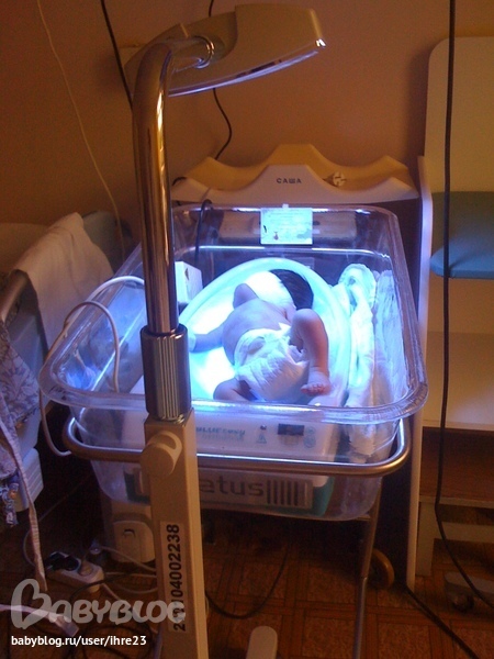 В родоме мы провели 6 дней, первые 2 дня сынок был в детском, на 3-й отдали. У нас была желтушка, вот так нас светили