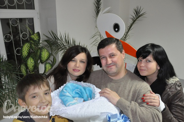 КиевНу вот я и трижды мама. С опережением графика на 2 недели, 6.11.2012, в 38 неделек и 1 день родился наш Андрюша с весом 3700 и ростом 53 см. Утром собралась в ЖК сдавать очередные анализы. Собрала и выпроводила среднего сына в школу. Погладила мужу рубашку на работу и поняла что меня начало хватать не как предвестники, а каждые 5 минут. Мужу говорю: "ну что отменяются мои анализы и твое совещание, едем в роддом" У нас были партнерские роды, так что сбежать на совещание ему таки не удалось )))) Пока доехали попали в три пробки, схватки уже каждые 2-3 минуты, перед носом у ГАИшников нарушили ПДД и мы у цели )))) В третий раз у меня классически сами отошли воды, после двух проколов пузыря со старшими детьми. Я хоть поняла как это. Что-то щелкнуло внутри и водопад )))) Покаталась на мячике называется )))) В общем все заняло три с половиной часа с момента схваток дома и до появления на свет нашего СЧАСТЬЯ. Поступили в 9:45 с открытием 3 см. И в 11:10 первый крик. Больно было неимоверно. Врач сказала, что классически шейка открывается 1 см в час, а у меня 6 см за полтора часа, потому и такая боль. В голове карусель была такая что не передать. Папочка массировал мне спину, подавал водичку. Мы на берегу договорились, что на потуги он выйдет в коридор. И тут такая удача для него, у меня вторая упаковка одноразовых пеленок оказалась в машине. И пока он ходил за сумкой, Андрюша начал штурм )))) На очередной схватке с потугой врач взяла да и сказала :"потерпи, еще 1,5 - 2 часа и ты родишь, я как это услышала, так с перепугу и ускорилась. Так что 1,5 - 2 часа обещаные врачем, закончились за 10 минут )))) Вот теперь любуюсь нашим творением!!! )))))))