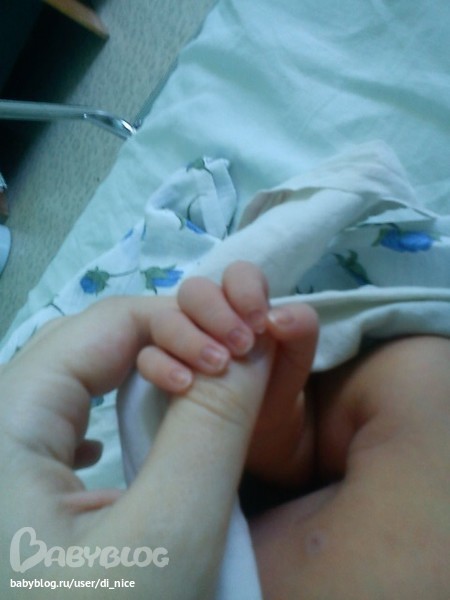 На следующий день было не легче, ходила по стеночке. Ходить было очень больно — болели „производственные травмы“, поясница, вся область таза… и сильно кружилась голова, видимо из-за моего вечно-низкого гемоглобина. Очень, кстати, отрезвляла обработка швов… После завтрака я со скоростью черепахи-пенсионерки поковыляла в детскую палату на другой конец коридора. Сердце оторвалось когда я ее увидела… Капельница воткнута в лобик((( От детской медсестры узнала, что мою лапульку подозревают в недоношенности. До сих пор не понимаю ПОЧЕМУ. На 39 неделе с весом 3650 это разве возможно? Ушла я оттуда со слезами на глазах и не могла думать ни о чем другом, кроме этой иголки в лобике. Обедать не хотелось ни капли, но пришлось запихивать. Были нужны силы восстанавливаться. Каждый раз, когда вставала с кровати, меня штормило, всё темнело перед глазами и немели ноги. Ходила через силу, чтоб когда придет время, я смогла ухаживать за доченькой. Для этого нужно хотя бы научиться стоять не шатаясь… Затем я еще несколько раз по стеночке ходила в детскую палату. Один раз меня не пустили, потому что у них там, видишь ли, процедуры. Последний раз я даже не успела к двери подойти, как медсестра сказала разворачиваться и что она скоро принесет малышку. Задолбала я их, похоже)))