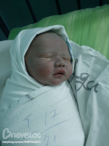 !!!Два года пытались забеременеть,но не получалось!!!Работала я в Москве.После очередного посещения дома я поняла,что у меня задержка.Первый тест-одна полоска,второй тест-еле различимая вторая!!!УРА!!!Потом был жуткий токсикоз,обмороки,гемоглобин падал до 80.Но я к этому была готова!!!Первое УЗИ-всё в норме,похоже на девочку.Второе УЗИ-норма,девочка.Мы во всю готовились к рождению дочери.Третье УЗИ-ОЙ КАКОЙ МУЖИЧОК!!!Кто??????????????Так я узнала,что у нас будет четвёртый сынок.ПДР было на 2июня,но сынок не торопился.Плановую гопитализацию мне назначили на 30 мая,но я легла только 6 июня.9 июня сделали УЗИ-вердикт:беременность переношенная 41 неделя,но с малышом всё хорошо.Вечером пришла врач и сказала,что меня завтра утром отправляют на програмированные роды.Вот и наступило 10 июня.С утра понеслось:клизма,заполнение заново карты,предродовая палата,в 9.30 мне прокололи пузырь,схватки начались сразу-первая через 5 минут,вторая через 4,и так далее всё меньше были перерывы,лежеть я вообще не могла,ходила по коридору.в какой-то момент я поняла,что меня начало тужить-сказала акушерке,она говорит-не может быть,что так быстро.Посмотрев,сказала не тужиться и быстро бежать на кресло.На кресло,мне показалось,я забиралась часа два.Первая потуга-всё хорошо-говорит акушерка,через секунду:соберись и постарайся изо всех сил вутужить за одну потугу!!!Я не знала что там и собрав все силы тужилась.Родился мой сынок в 12.25 с сильным обвитием-хотя по УЗИ за день до родов его не увидели.Вес 3650,рост 55см.У меня всё отлично-без разрывов.Спасибо акушерке ВЕНЕРЕ!!!!!!!!Сейчас нам уже пять месяцев.