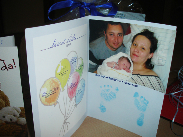 подарочная открытка с Марселькиными датами итд на память от замечательной акушерки Яны и род зала...и наши ножки масюсенькие))))