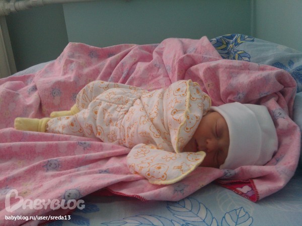 Красивая, розовенькая, не опухшая. В это время сделали укол в ногу. Я с облегчением вздохнула (ведь у всех тут рассказ заканчивается словами «и больше я ничего не чувствовала - вся боль куда то ушла»). Но не тут то было! Доча сразу успокоилась, а мамаша (то есть я) начала орать!!!! Акушерка вытаскивала послед (весьма чувствительно), медсестра выкручивала сосок в трубочку чтобы детка могла взять его в рот (делала она это с пристрастием, так что тоже было больно). Далее они вдвоем взялись меня зашивать… тут я уже начала реветь. У нас ни на родах, ни после не обезбаливают! ЕСТЕСТВЕННЫЕ РОДЫ видите ли. В общем зашили наживую. И только я подумала что это конец, как акушерка принялась давить на живот. Ооочень больно. Совсем больно! Продавливала такое ощущение что до самой спины))) Я снова начала невольно стонать и прикрикивать. Доченька удивленно смотрела на сумасшедшую мамашу мило почмокивая сосок. Лежали мы вместе 2 часа. Через каждые 20 минут мне приходили и давили на живот. Родила я ровно в 11:00. ДОЧЕНЬКА - АРИШКА (2,916 кг, 50 см).