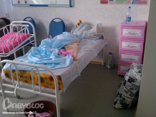 Ептить, конечно мне страшно! Вдруг рожу за это время (опять таки наивно надеясь на чудо). В общем муж пошел со мной. Договорились что как акушерка придет - он домой поедет. Пришли в комнату какую то. Мне она показалась страшной, неуютной и с полной антисанитарией. Мужа кстати пустили без всяких анализов и в обычной одежде - даже халат не дали. Так он мог до самого рождения малыша быть со мной. Дальше я удивилась еще больше… Говорю: «Стооойте, а если я буду рожать, то где у вас родовая?» А мне в ответ: «Вот тут и будешь рожать». Ужас. Так вот выглядит у нас комната эта: