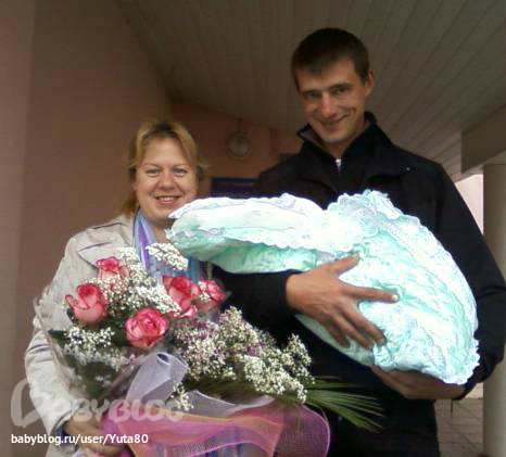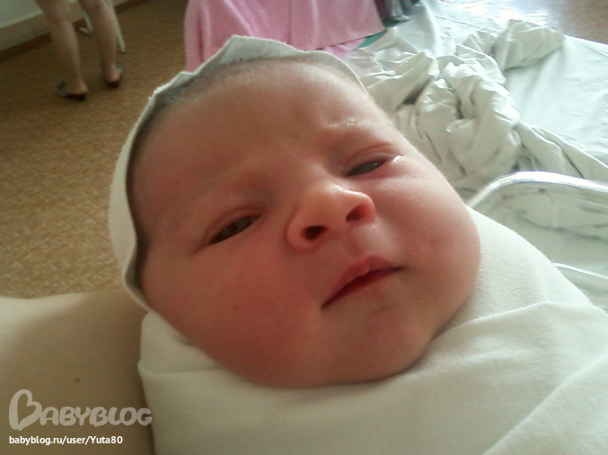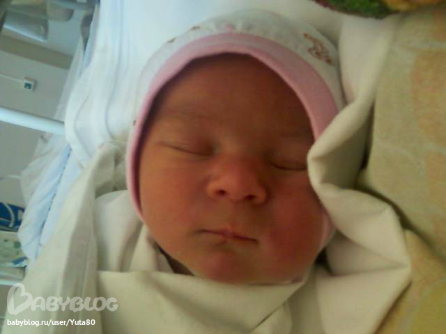 Секунд через 5 я услышала долгожданный крик моей доченьки!!! … Время рождения - говорит педиатр – 17.10. 4.000 кг, 52 см, 8-9 по Апгар… А мой «кулёчек» у меня на груди!!! Господи, красивее ребенка не найти, это моё чудо, моя малышка, моя долгожданная доча!!!!! Забрали обрететь, запеленать. Потом к груди приложили – не стала Настасья кушать, наверное устала, сказала педиатр и унесла ее… Потом штопали (блин, больно было, хотя как-то это смешно звучит после испытанных родовых болей))). 2 часа на каталке. Звонки, смски… И жуткий холод… У меня так ноги никогда не мерзли, меня аж колотило. Потом акушерка накрыла меня одеалом… Мои все перенервничали – почему не звоню. Сестра 2 раза в приемное отделение звонила…