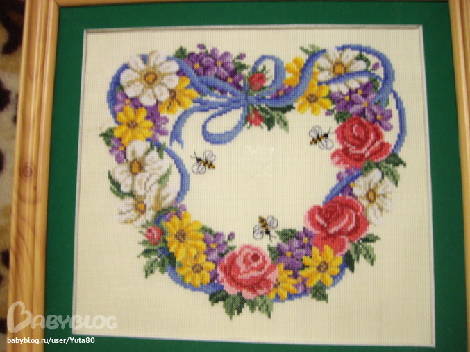 Лирическое отступление… Немного о роддоме. Новый, построен под перинатальный центр. Палаты 3- и 4-местные. Свой душ. Кушать привозят в палату, капельницы-в палату, даже анализы брали в палате… Скучно… Лишний раз и выходить и палаты не нужно… Время прогулок беременных с 16.30 до 19.00. Благо с девочкой с палаты подружились, а то со скуки можно было бы сойти с ума, да от тоски по Настюше… Зато почти вышила картинку…