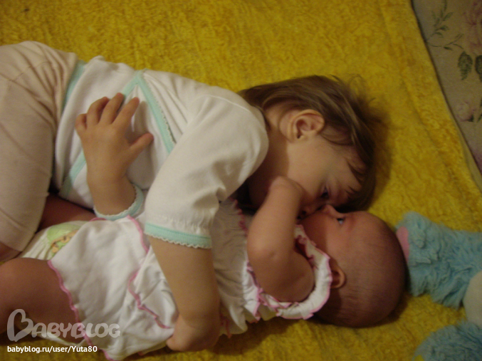 Наши дочуркам Настюше год и 9,5 и Арише 5 месяцев.