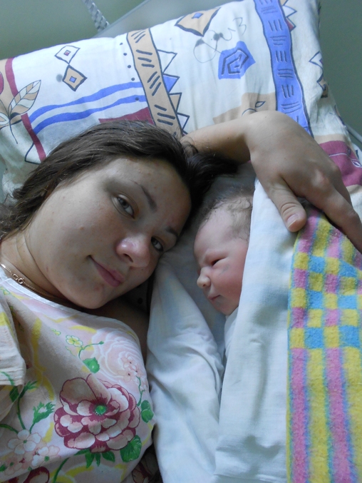И вот в 14-00 меня начало тужить не по детски- а нельзя,раскрытие 7 см всего.....плюс БВП уже 3 часа.....ктг нормальное вроде было, и я крючусь от ужасной боли во время потуги......так прошло еще 2 часа, и вот в 16-00 я кричу изо всех сил, что если я сейчас не рожу-то точно дела свои сделаю на кровать вам....акушерка посмотрела раскрытие полное-перевели на кресло и тут началось, самое сложное тужиться правильно, сначала я делала это неправильно и все 3 схватки тужилась неправильно, потом мне объяснили что и как. и через 3 схватки(а это 9 потуг) появилась головка сынули), еще 1 схватка и 16-45 родилось моё сокровище, как сейчас помню.....акушерка говорит какой пухляшик,смотри Лена на своего сыночка,копия ты!!! хотя только 3420гр, 52 см, 8/9 по АПГАР, сделали 3 наружных шва (т.к.эпизиотомию сделали)взяли на обработку, но почему то к груди сразу не прикладывают у нас, только после обработки.я плачу, звоню мужу, говорю родила, он говорит знаю....только не знаю рост и вес. все 4 часа просидел в справочной, потому что я трубку не брала. Дальше начала отвечать на смс и звонки, все поздравляют, спрашивают что трубку не брала, а я с гордостью отвечала что у нас сегодня двойной день рождения моё и сына!!!!