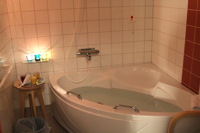 Когда я зашла в эту ванну, то, честно говоря, офигела! Там был полумрак, свечи, поднос с несколькими напитками на выбор, сэндвичи. Кто-то заботливо принес полотенце, сорочку и халат. Еще там было кресло для мужа. ))) За все это время, сколько я там плескалась, нас никто не докучал, типа сидите сколько хотите )))