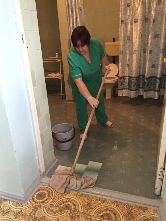 Меня спустили в приемник на клизму, санитарочка домывает пол,чтобы вскоре всадить мне пару литров. Интересно,а она помыла руки после швабры?)