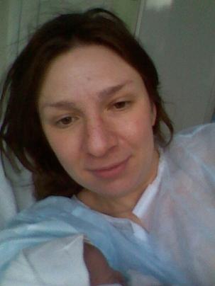 Спустили в родильное отделение меня в 10-45. Заполнили карту, положили на кушетку, подключили КТГ...Врач спросила есть ли схватки, на что я ответила "вроде да...", а она "значит нету" . Посмотрела меня, сказала. что раскрытие 0.5 см..."Негусто" - подумала я...Дальше все было терпимое, я валялась, схватки шли несильные, успевала смски рассылать, общаться с девочками и даже фоткаться))).