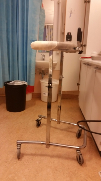 В уголке стульчик для папы, муж там в конце и сидел тихонько, чтоб меня не бесить. А последняя фотка - мой новый лучший друг - прекрасные ходилки для проживания схваток. Я как ворвалась в родовую палату около 15.00, тут же вцепилась в эти ходилки. Следом зашла моя акушерка и решила проверить открытие, а там 4 см. Т.е. за полчаса с 1 см до 4 см. Акушерка поцокала языком: "Да, это наверное невероятно больно, когда так быстро". Я лишь поняла, что вот ЭТО считается больно и начала малодушно орать на схватках. Ну а что, считается, что мне очень больно :))) Заявила акушерке, что я трусливая сопля и требую эпидуралку. Мне заказали приятного мужчину и проткнули пузырь, воды были коричневые. Мой спаситель появился через 10 минут и уже в 15.37 мне поставили анестезию. Кстати, никто меня не заставлял ложится на кровать и прижимать колени к животу, а попросили сесть на край кровати и опустить плечи, как "злой котик". Забавное сравнение :)))) Через 10 минут пришло облегчение.... В итоге, действительно больные схватки у меня были всего час, я считаю, это мне очень повезло. Боль отступила, и мы .... прааааавильно, продолжили смотреть "Звездные войны" :))))))