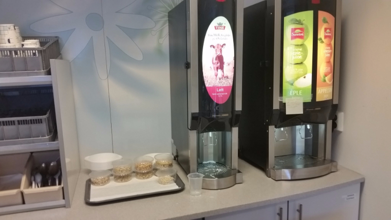Опять же все есть - подгузники, пеленки, прокладки, одежда для меня и мелкой. Им тут реально требуется лишь беременная карта, остальное все дадут :)) И опять меня поразило питание - в послеродовом есть столовая, похожая на шведский стол в отеле - витрины с шикарном выбором сыра-паштета-колбас-ветчин, хлеб и булочки, сухие смеси на завтрак и горячие полноценные обеды - бери да подогревай, прийти можно в любое время суток. Фрукты, овощи и десерты, автоматы с молоком и соками. Муж поправился на 3 кг за 3 дня :)))