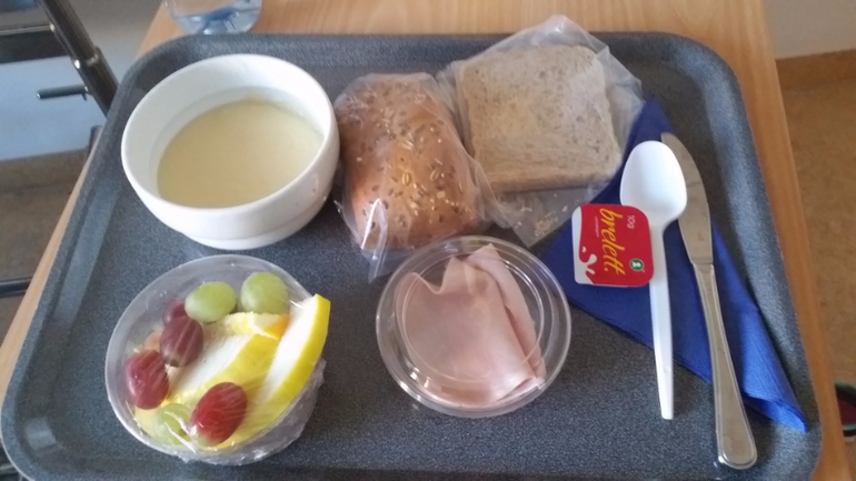 В душе все необходимое - от рубашек до прокладок и душа для геля. Отдельно про еду - я была впечатлена. Можно в любое время выпросить бутерброд, но трижды в день на кухне присутствует дама, которая любезно тебе выдаст отличный завтрак/обед/ужин. Бутерброды на завтрак (особенность страны), супчик + фрукты + десерт на ланч и теплый обед.