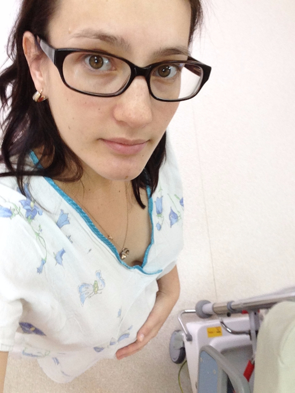 Последнее фото с животом перед родами, уже в больничной сорочке, очень удобной. Волнительно.