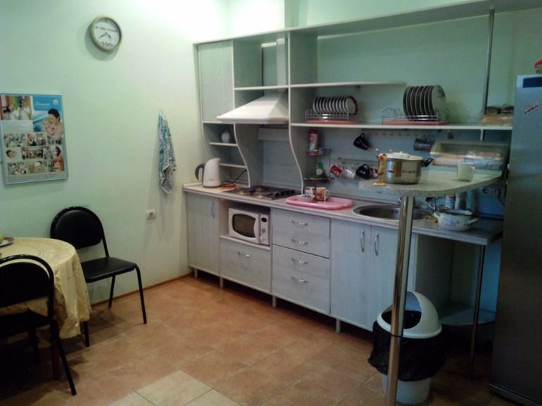 Кухня-столовая со всем необходимым для готовки или разогрева пищи. Приятно