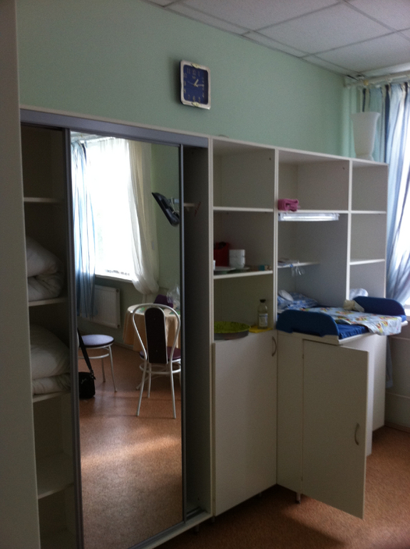 Сама палата по нынешним меркам немного стремновата, но тогда, после того, что я впринципе видела в больницах мне и так было хорошо. Удобная широкая кровать, телек, все необходимое для ребенка- пеленки, распашонки.