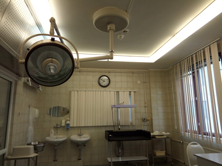 В коридорах на полу положены поперек какие-то, не знаю как описать, железные узкие пластины что-ли. Может под ними провода или они закрывают какие-то стыки. Но когда тебя везут на каталке, которая на этих штуках подпрыгивает с жутким лязгом, очень неприятно. А потом мы возили по коридорам детей и было просто тяжело перекатывать детские тележечки через эти препятствия. Не говорю уже о том, что из-за этого был постоянный грохот.