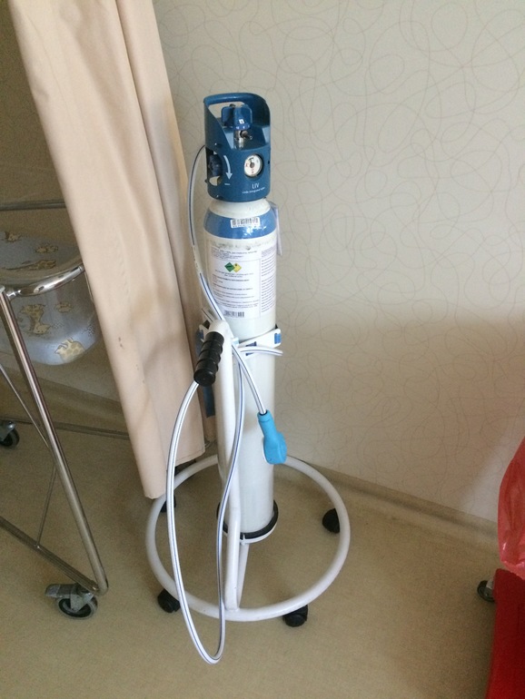 У нас клизму не делают, но она и не понадобилась. Около 17 меня хорошенько прочистило и сразу же после этого начали отходить воды. Раскрытие было 4 см. Через 2 часа раскрытие было 7 см, на фитболе стало больно сидеть. Мне предложили эпидуралку, но я изначально Ее не хотела, поэтому выбрала веселящий газ. Вот это вещь! Я им продыхивала схватки, было ощущение, что я очень-очень пьяная. Боль не чувствовала. Муж на схватке делал мне массаж поясницы и это помогло мне расслабляться.