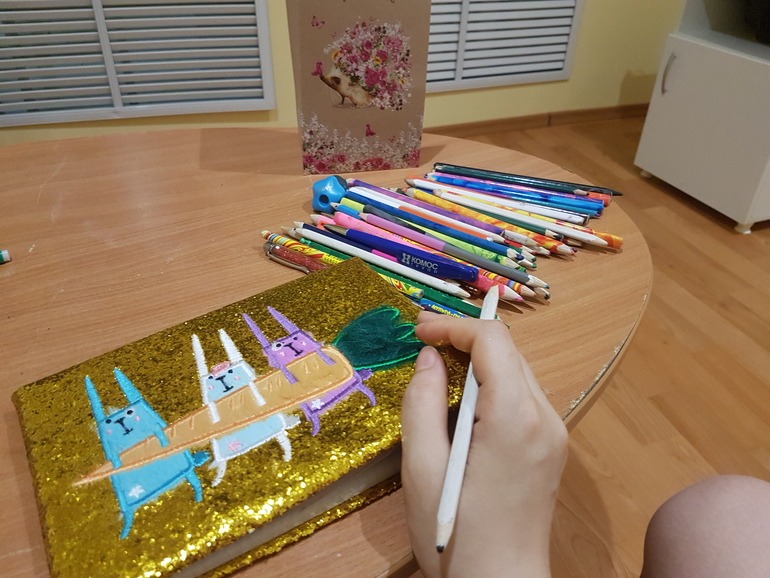 Выписка наша пришлась прямо на день рождения сына, в ночи накануне выписки рисовала ему книжку со сказкой.