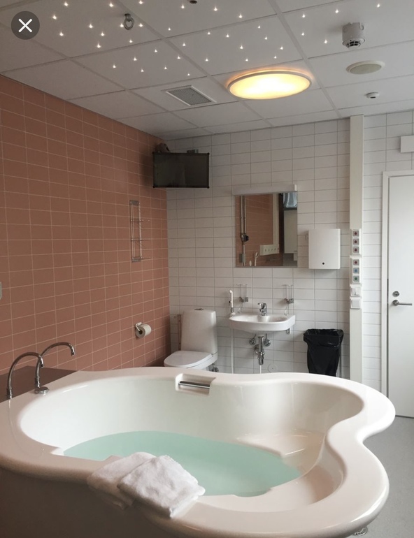 Ванная, как выяснилось вскоре, оказалась мне не нужна. Я испытала 1 минуту блаженства, погрузившись в нее. Теплая комната с мягким светом, огромная удобная джакузи, супер комфортной температуры вода, много всяких выемок и ручек за которые можно держаться и принять удобную позу, даже немного поплавать - все создано для расслабления и блаженства, но…. Мой организм сыграл со мной злую шутку и как только началась первая схватка в воде, я с ужасом поняла, что мне ооочень больно. Намного больнее чем на суше, намного больнее чем стоя, лежа или в движении. Я буквально почувствовала, как мои внутренние органы сместились в пространстве и стали друг на друга давить.