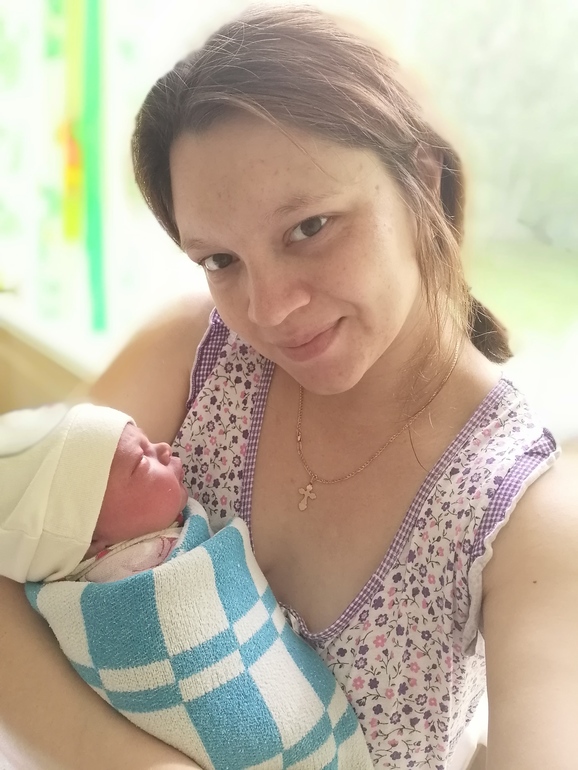 ЕкатеринбургПока мой сладкий карапузик спит, попробую рассказать в подробностях о моих вторых родах. Всё началось 20 июля, до часу ночи сидела на бебиблоге, легла спать. В 2.00 сквозь сон почувствовала как из меня течёт) я сразу поняла, что это воды, но подумала уж очень рано, ведь срок 37 недель и 2 дня, ну ладно, бужу мужа, говорю воды отошли, он с просони понять ничего не может, а я ношусь по дому в панике и с плёнкой между ног)) позвонили в скорую, муж со мной не поехал, т.к дома спал наш старший сынок. Сказал приедет утром. Поехала в роддом, а в голове и радость и страх, радость, что скоро встречусь со своим малышом, а страх как пройдут роды без пузыря, первого рожала с водами было легко переносить схватки. Приехала в род.дом, стали оформлять и спрашивать есть ли схватки, схваток нет, посмотрели на кресле раскрытие 2 см, отправили в патологию поспать, пока схватки не начнутся. Но какой там спать, ведь впереди такой ответственный момент))) поднялась, сделали ктг, отправили в палату. Лежу жду, что то начало появляться лёгкие схватки с интервалом в 5-7минут в 4.00. В 5.00 я уже не вытерпела и пошла будить мед.сестру, чтоб меня спускали в родовую, но схватки были так же лёгкими и переносимыми. Спустили в родовую положили на кровать или как её назвать, где рожают) поставили катетер, прицепили провода для ктг и сказали лежать 15 минут, ну норм, лежу. Схватки идут с таким же интервалом. Пролежала, разрешили ходить.скакать на мече, и т. Д. Хожу, скачу интервал 3-4 минуты, но схватки не болючие. И интервал не сокращается. В 9.45 посмотрели на кресле раскрытие 5-6 см. Было решено стимулировать. Поставили капельницу и понеслось. Как раз пришёл муж на самый треш) буквально сразу схватки пошли болючие с нарастающей, интервал сократился, скакать на мяче было уже невозможно, поэтому я просто стояла, вцепившись за поручни, вместе с мужем продыхивал и схватки, делал массаж на пояснице, но меня это раздражало ещё больше. Попросила не делать, просто на схватке дышали, муж следил за техникой дыхания, глубокий вдох и медленный выдох, так чуточку становилось легче. В 11 я начала чувствовать, что хочется какать) отправила мужа сказать об этом)) посмотрели раскрытие сказали ещё с час придётся потерпеть. В 11.25 я уже не могла ни стоять ни дышать, начало тужить, я начала стонать. Зашла акушерка на мои стоны, посмотрела разкрытие. И заветное, мы рожаем, зовите всех!! Я улеглась на кроватку, мужу сказала, чтоб уходил. Ушёл. И понеслось... Первые потуги, результата не принесли, ну вот не могу и все как не старайся, я уже кричала, что сейчас сдохну, на что мне ответили "только не в нашу смену")) потуги идут в я нифига, по лицу акушерка поняла, что я чуток обкакалась)) ну это было трудно не заметить) спустя 15 минут я уже умоляла, чтоб меня чикнули. Ну ок, чикнули) и за вторую потугу после чика родилась головка, боже как это было больно и я чувствовала, что что то вылезло, головка, со следующим потугами а их было где то 5 родила плечики, и ножки. И вот оно чудо, в 11.45 счастье и облегчение, запищало моё счастье все синенькое, как инопланетянин, положили на живот! А дальше я уже ничего не чувствовала, никакую плаценту я не рожала, она как то сама вышла что ли или я уже не помню этого. Потом зашивали, давили на живот чтоб матка сокращалась. Забрали пупса на осмотр, замерли, запеленали, и тут заходит муж, я думала он уехал, а он оказываетс